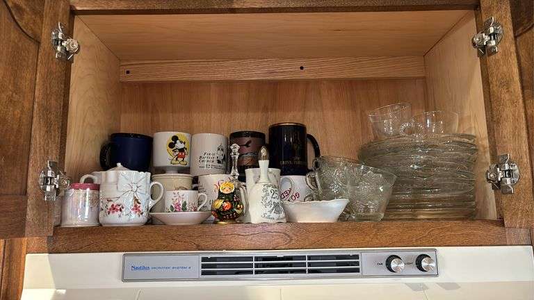 LOT 45 - LOT OF ASSORTED CUPS, SNACK PLATES, NESTING DOLLS, BELLS, ETC.