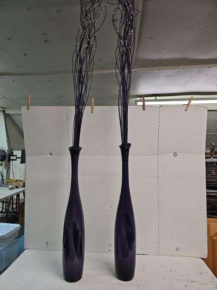 LOT 204 - PAIR OF 25" TALL PURPLE VASES