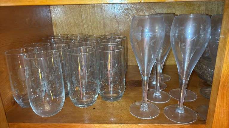 LOT 119 - 17-ETCHED GLASS WATER GLASSES & 7 ETCHED FLUTES