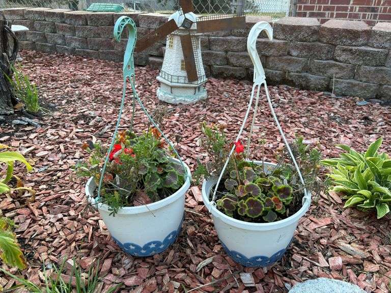 LOT 160 - (OUT) 2-CT. PLASTIC HANGING FLOWER POTS WITH PLANTS