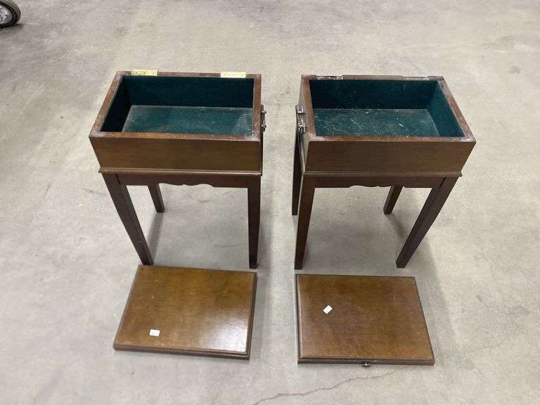 LOT 331 - (2) 21H” x 14W” JEWELRY BOX TABLES (BOTH LIDS NEED REPAIRED)
