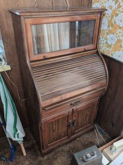 LOT 74 - (DR) ROLL TOP DESK WITH BOOKSHELF TOP & STORAGE BOTTOM (21" X 30" X 54" TALL)