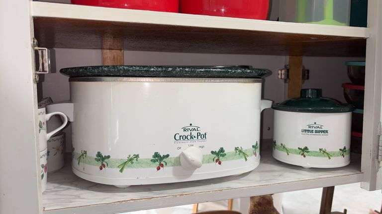 LOT 34 - (K) RIVAL CROCK POT AND RIVAL LITTLE DIPPER ELECTRIC STONEWARE SLOW COOKERS