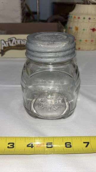 LOT 166 - (LR) VINTAGE JAR WITH ZINC LID