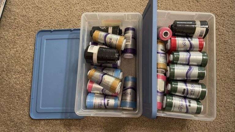 LOT 248 - (LR) 2-CT. STORAGE CONTAINERS WITH LIDS, FILLED WITH THREAD