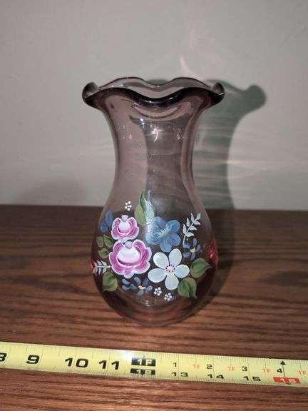 LOT 367 - (FR) 8" TALL HAND PAINTED (FENTON) VASE
