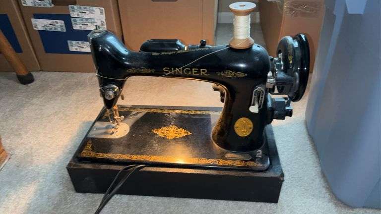 LOT 447 - (FR) VINTAGE SINGER SEWING MACHINE (NEEDS OILED)