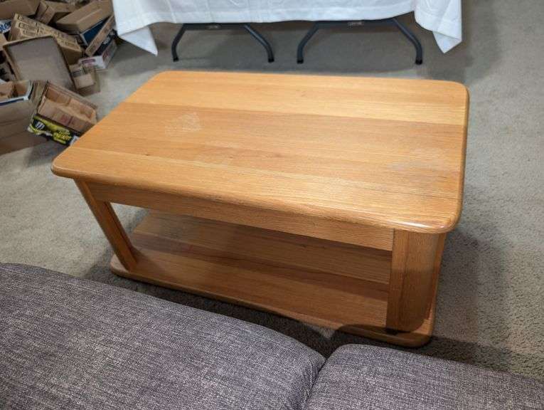 LOT 543 - (LR) OAK 2-TIER LIFT-TOP COFFEE TABLE (21" X 36" X 15½" TALL)
