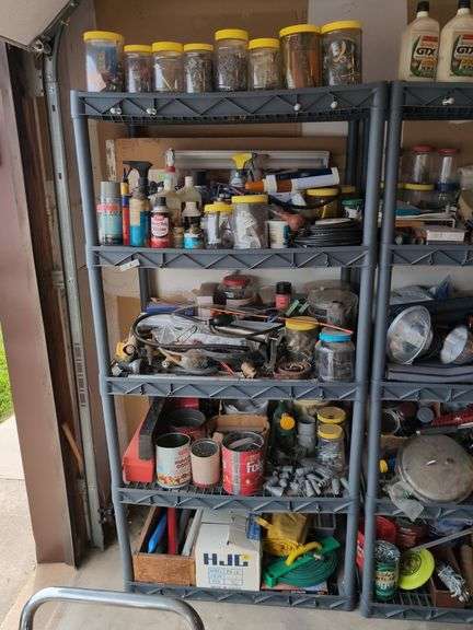 LOT 575 - (G) 5-TIER STORAGE SHELF WITH CONTENTS (24" X 36" X 73" TALL)