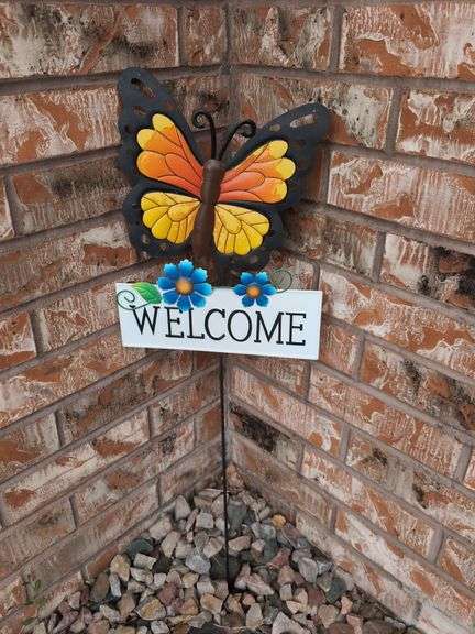 LOT 647 - (OUT) METAL BUTTERFLY WELCOME YARD STAKE