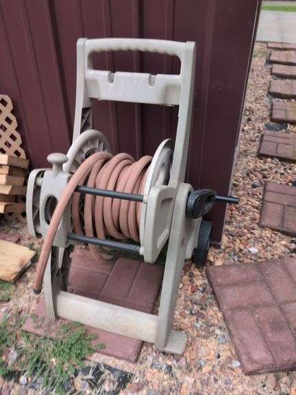 LOT 681 - (OUT) GARDEN HOSE REEL CART WITH GARDEN HOSE
