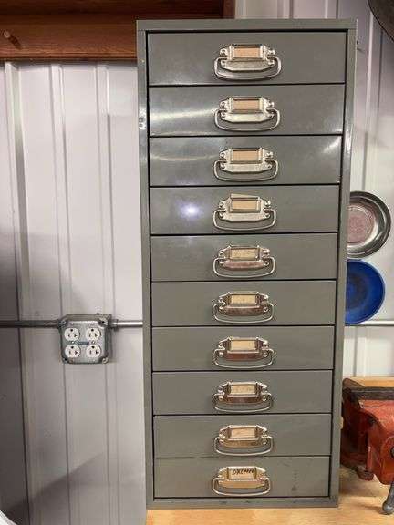 LOT 855 - (SHOP) 12.5” X 10” X 30”T METAL 10- DRAWER CABINET