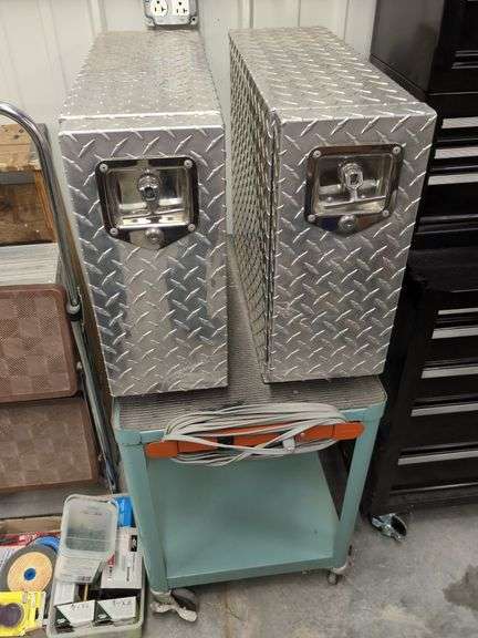 LOT 841 - (SHOP) 2-TIER METAL ROLLER CART & (2) ALUMINUM DIAMOND PLATE 5-DRAWER TRUCK TOOL BOXES