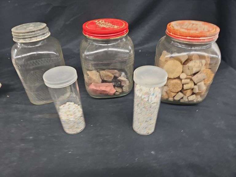 LOT 208 - COFFEE JARS, CORKS, ROCKS, ETC