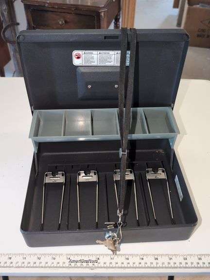 LOT 312 - (DR) SENTRY SAFE METAL CASH BOX WITH KEYS