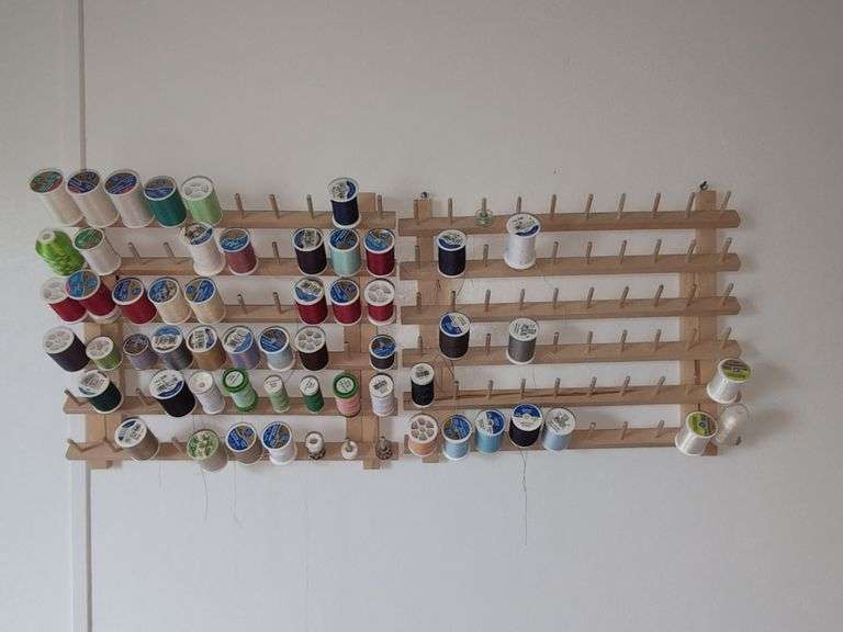 LOT 387 - (LB) (2) HANGING SPOOL RACKS WITH ASST'D THREAD