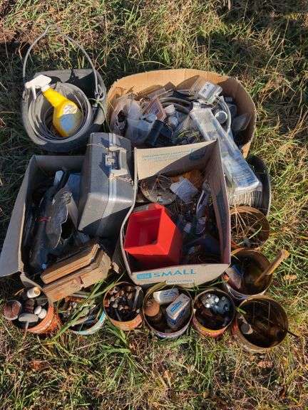 LOT 683 - (OUT) FEED BUCKET, HARDWARE, CASE, WIRE, ETC...