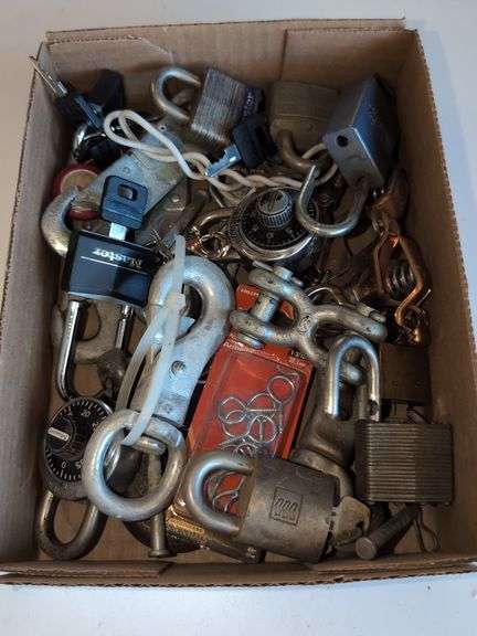 LOT 906 - (G) ASST'D PADLOCKS, KEYS, COMBO LOCKS, HOOKS, PINS, ETC...
