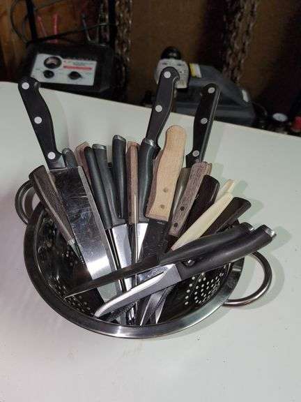 LOT 1005 - (G) STAINLESS STEEL COLANDER & ASST'D KNIVES