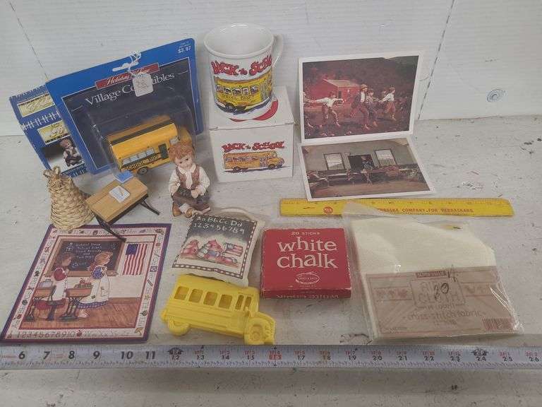 LOT 3 - ASSTD. VTG. MUG, RULER, CHALK, AND DECOR