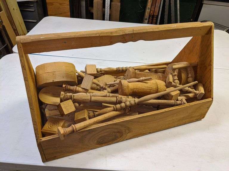 LOT 595 - WOOD CARPENTERS BOX WITH ASST'D WOOD PIECES