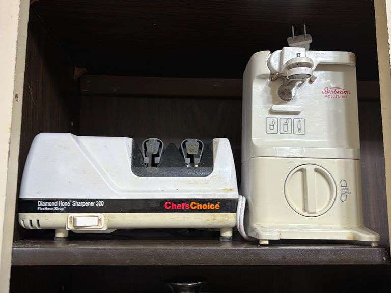 LOT 17 - CHEF’S CHOICE KNIFE SHARPENER( UNTESTED) SUNBEAM CAN OPENER (WORKS)